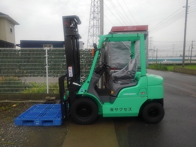 2トンの三菱製ディーゼルフォークリフトです。新しい営業所を作られ、納車場所は埼玉県とは違う場所となります。現場で「フォークリフトを買って欲しい!」という声があったそうで購入して下さいました。当社の得意とする企業カラーの指定色にすることにより統一感がでます。