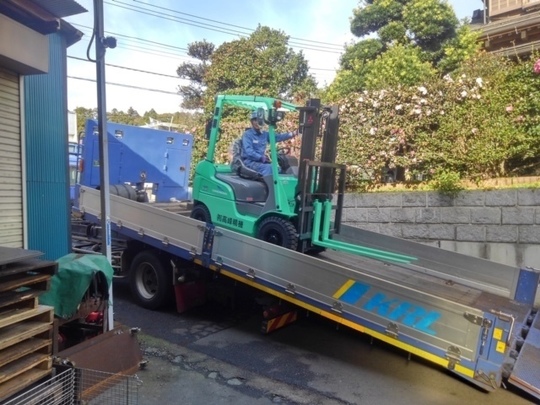 大きめの荷物を持ちたいそうで「爪を交換したい」というご依頼を頂きました。長い爪にすると減トンして荷物が持てなくなってしまう事をお伝えし、大きい荷物も持てるように2.5トンのフォークリフトをお勧めすると代替で購入して下さいました。使い勝手が良く大変便利になったそうです