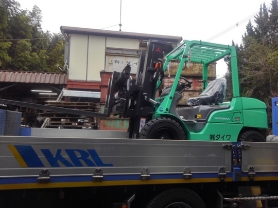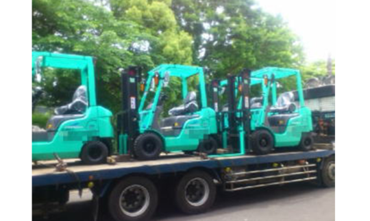 他メーカーのフォークリフトをお使いでしたが、エンジンのかかりが悪くなったとの事で、当社から新車の三菱フォークリフトを購入して下さいました。暫くたってから、ブレーキの不具合があったそうなのですが、サービス対応させていただき喜んで下さいました。