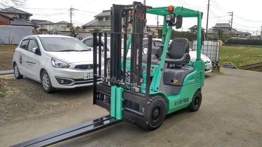 0.9tと1.8tのガソリンです。小型特殊ナンバーつきで、道路も走りたい!向こうの工場までそのまま行きたい!という方に最適です。購入の際には、書類の手続きも全て当社で行いますので大変便利です。