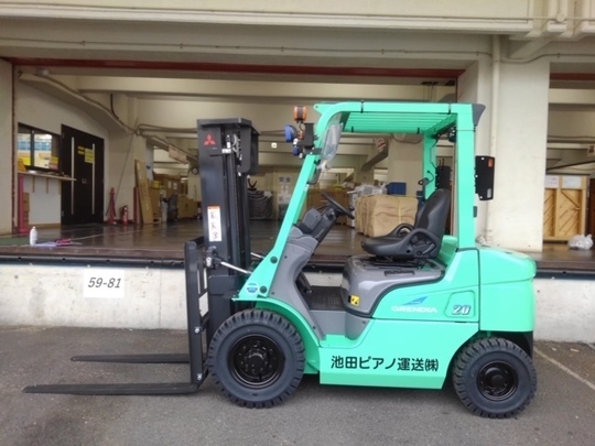 2トンの三菱製ディーゼルフォークリフトです。新しい営業所を作られ、納車場所は埼玉県とは違う場所となります。現場で「フォークリフトを買って欲しい!」という声があったそうで購入して下さいました。当社の得意とする企業カラーの指定色にすることにより統一感がでます。