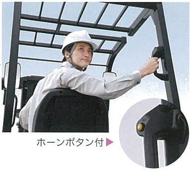 警報音が鳴るホーンボタン付きのアシストグリップが標準装備でついています。また安定した姿勢で後進ができます。