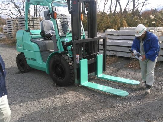 2019年10月より、三菱ロジスネクスト TCM製のFX(エフエックス)という黄色いフォークリフトに生まれ変わりました。アイドリング防止機能やLEDのヘッドランプが標準装備されています。