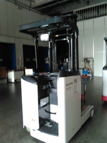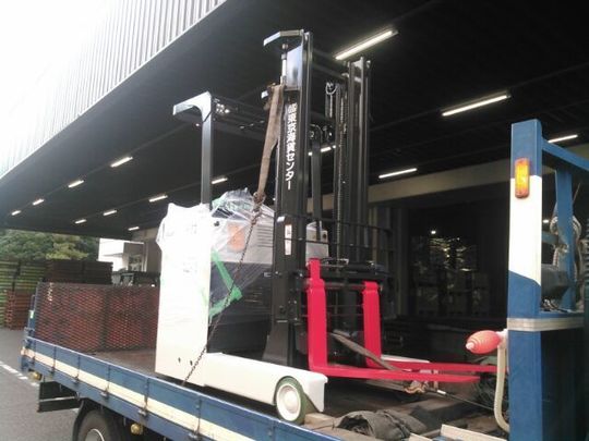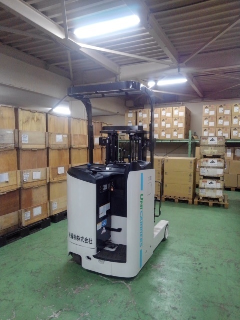 1.5トンです。中二階のある倉庫にお引っ越されたのですが、通常のフォークリフトですとマストを上げて階段を上がり、荷物を積まなければいけないとの事でした。そこでリーチとしての荷物を運ぶ性能もあり、しかも1人で二階の積み下ろしもできる方法をご提案させて頂きました。