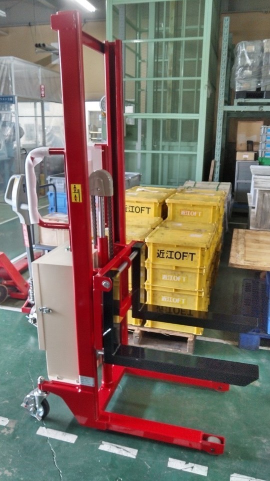 機能を絞り込んであるので、その分、低価格となっています。走行は手動で、昇降(しょうこう)は電動で動かします。パレットも普通に運ぶことが出来ます。免許が必要ないので、女性や外国の方でも運転できます。