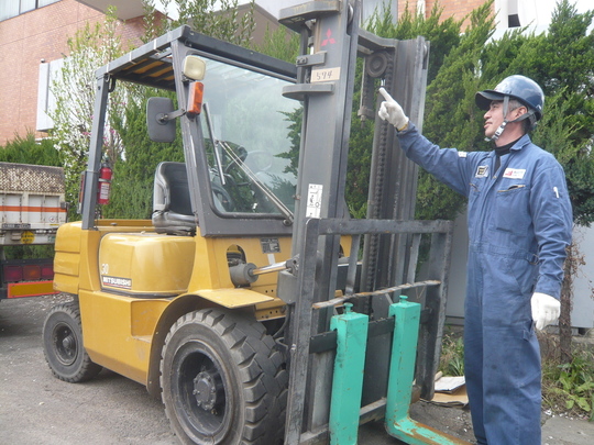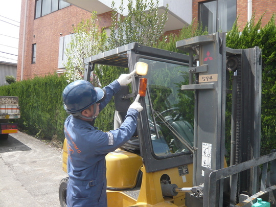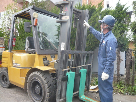 その日一日の作業が安全に行える状態かどうかを、仕事開始前に点検します。フォークリフトを用いて作業を行うときは、その日の作業を開始する前に作業開始前点検を行わなければなりません。(労働安全衛生規則第151条の25)