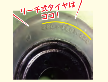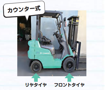 フロントタイヤ(駆動輪)とリヤタイア(操縦輪)で構成されており、「エアータイヤ」と「ノーパンクタイヤ」の2種類があります。使用する目的や路面の状況に応じて使い分けると便利です。