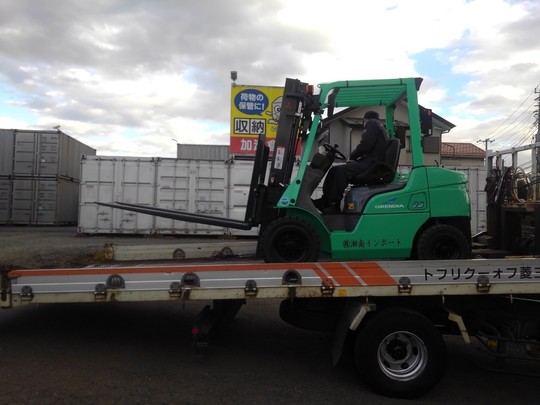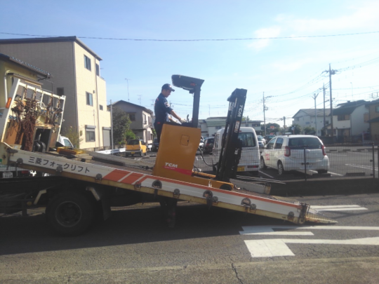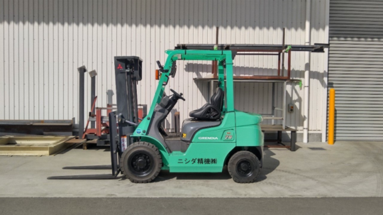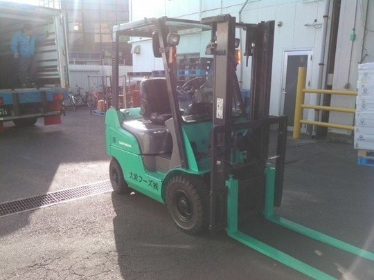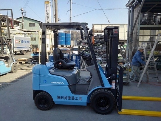 1.5トンの三菱製ガソリンフォークリフトです。他メーカーさんからもお話があったそうなのですが当社の中古車の方が程度も良かったので購入を決めて下さいました。フォークリフト教習所さん(当社のお客様)が使われていたので、アワメーターもほとんど動いておらず程度の良い車輌です。