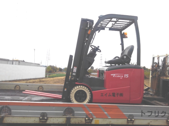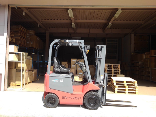 1.5トンのバッテリーフォークリフトです。ネットを見てレンタルでお問い合わせを頂いたのですが、お探しのものと同じ中古車の在庫がありましたのですぐ購入して下さいました。整備も終わっていたので、ご注文頂いてから3日後に納車させて頂きました。お客様の商品も入ってきたので、荷下ろしに間に合い大変喜んで頂けました。