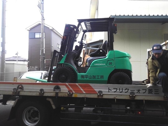 1.5トンのバッテリーフォークリフトと1.8トンのガソリンフォークリフトです。「回転フォーク」をずっとお探しになっていらっしゃったそうで、ネットでエンジン車のお問い合わせを頂きました。その際、バッテリー車の「回転フォーク」も在庫がありましたので、2台も購入して下さいました。物をすくって落とす作業がある時に便利です。