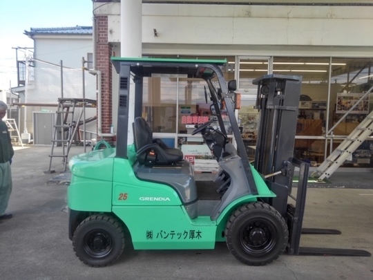 2.5トンの三菱製ガソリン式フォークリフトです。来社して下さり、ちょうどアワメーターも少なく程度の良い5年ものの車輌があったのでお見せしたところ、大変気に入って下さいました。まるで新車のようでした。とても綺麗だったのでお客様も大変お喜びの様子でした。