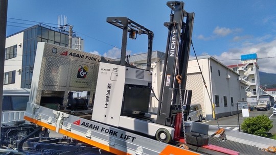 社長様と所長様が1年程ご検討後、中古のリーチフォークリフトをご購入頂きました。購入の際に、月例点検を同時契約をして頂いたので、お値引してお買い上げいただきました。「月例点検」は月に1回当社の整備士がお伺いし点検をさせて頂くので、急な故障でフォークリフトが止まってしまい作業ができない!なんていう事を防ぎます。小さな点検料で大きな故障による出費を防ぐメリットがあります。