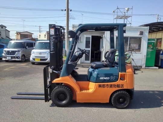 トヨタ製のガソリンフォークリフトでLPGガス併用式です。いつも当社で月例点検もして下さっていて、整備士立ち合いでの納車となりました。年式は経過していますが、アワメーターはほとんど動いておらず大変程度のよい車両です。