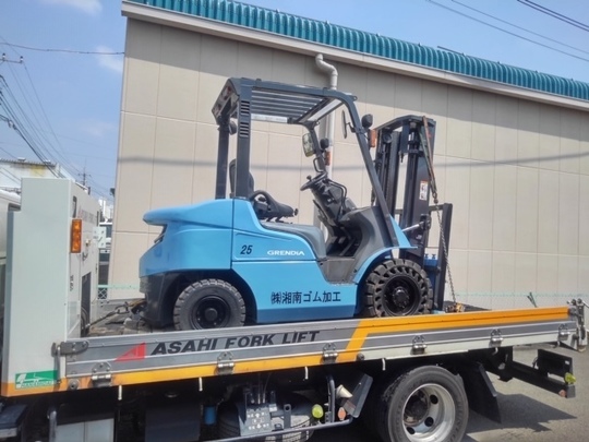 2.5トンのディーゼルフォークリフトです。当社まで足を運んで来て下さり、整備前の中古車の現状をお見せしました。営業マンが「こちらに整備と修正塗装が入りますよ」とお伝えし、購入を決めて下さいました。新車の様なフォークリフトを見て大変喜んで下さいました。お客様が喜んで下さる事がスタッフ全員の励みになります。