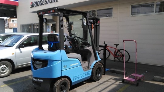 1.8トンです。近所の自動車整備工場で修理をやっていて、フォークリフト業者でやってもらいたいと思ったそうで、お問い合せを頂きました。顔が映るくらい綺麗な中古フォークリフトです。お持ちのフォークリフトも年次点検(特定自主検査)と修理をさせて頂き大変喜んで下さいました。