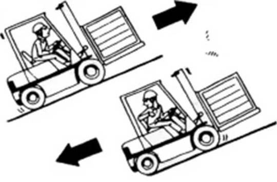 →荷物を積んで坂道を走行する場合は、上りは前進、下りは後進!空荷で急な坂道を走行する場合は、上りは後進、下りは前進!