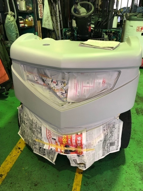 全ての中古フォークリフトにまるでピカピカ新品修正塗装がつきます。納車時に「新車フォークリフトを納車してくれたの?!」とお客様から大好評です。綺麗に見せるために水性塗料や部分的に塗装するのではなく、下地からきっちり塗装しています。