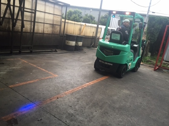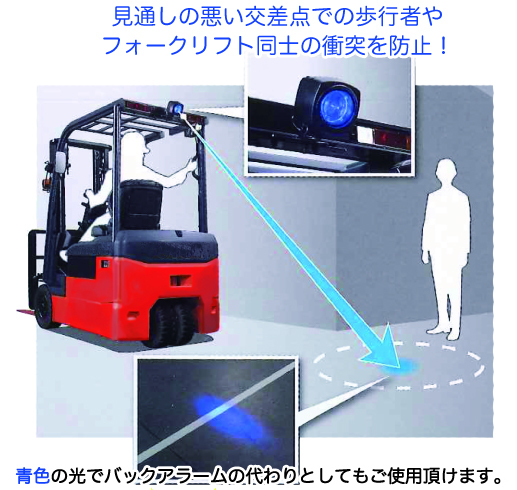 後方の床に青色の光が照らされます。周囲の作業者に存在を知らせることができます。