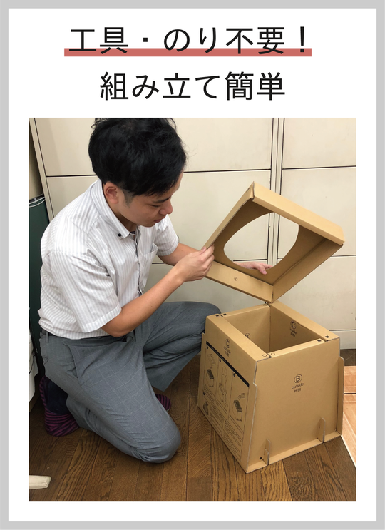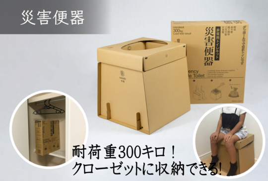 そんな時、すぐに組み立て、つかえるダンボール製のトイレです。工具や糊が不要なのでお子様でも簡単に組み立てられます。