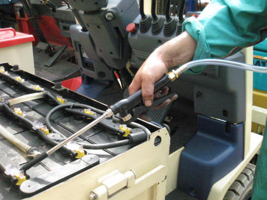 バッテリーフォークリフトの中に入っている精製水を注入する最適な神アイテムとして、ご紹介しています。