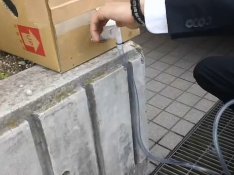 精製水の箱の蓋部分にホースを接続します。