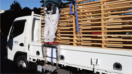 荷物にラッシングベルトを掛ける際に、足場かつ昇り降りのステップとしてご利用いただけます。