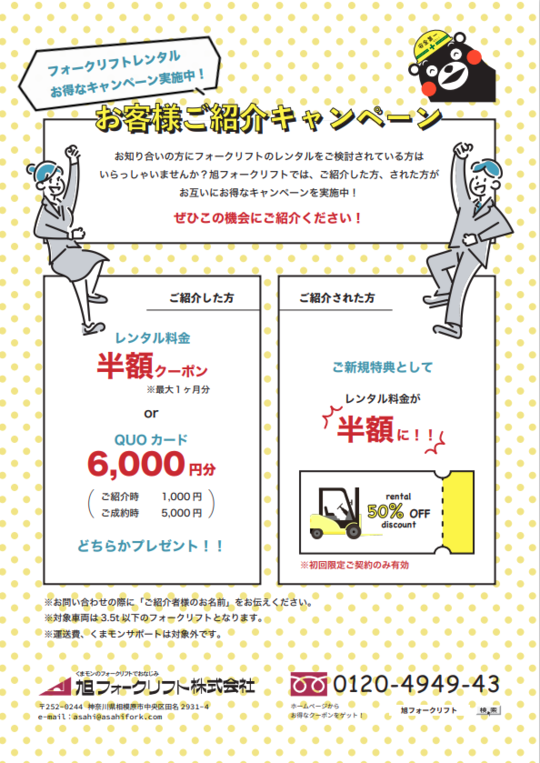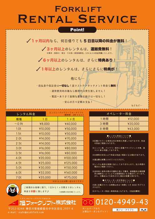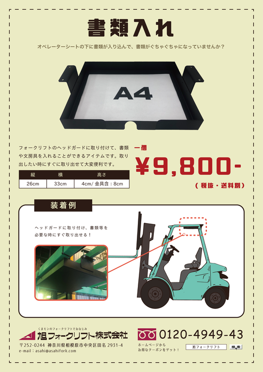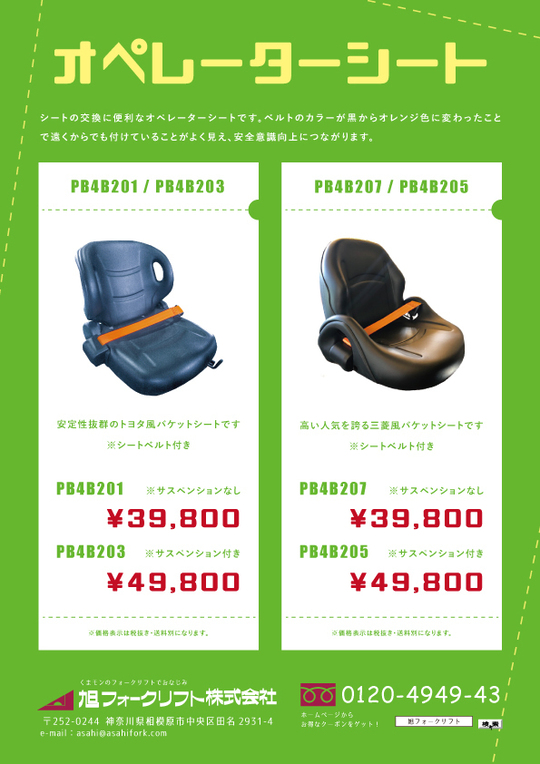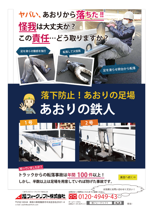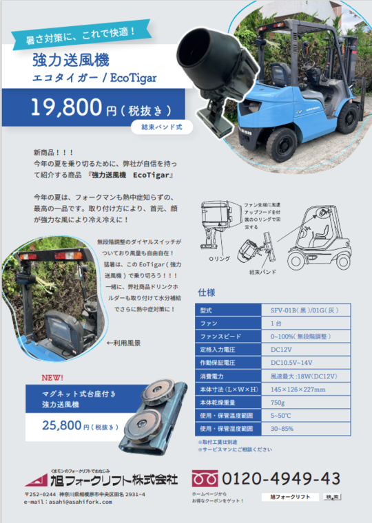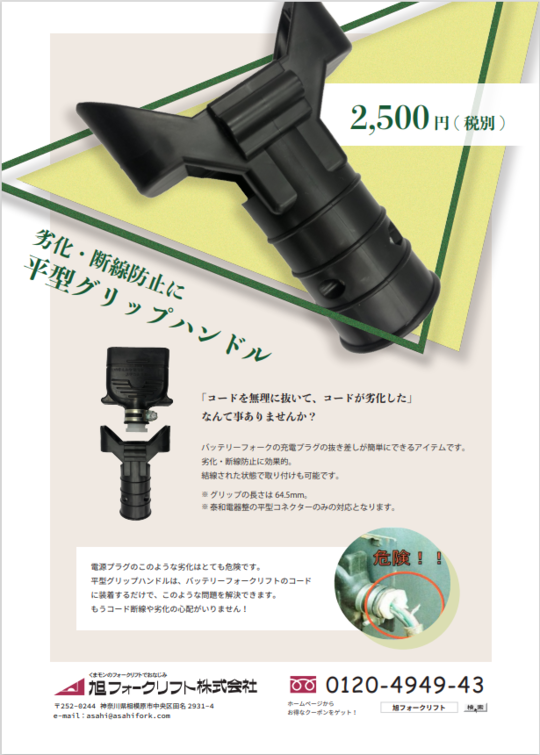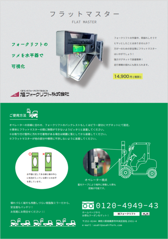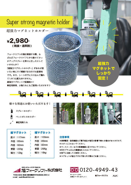 お客様の所へご訪問した際にお渡ししている【フォークリフトに関連した物流機器のチラシ】を、こちらからPDFでダウンロードできます。金額やサイズ等 ぜひご参考にして下さい。