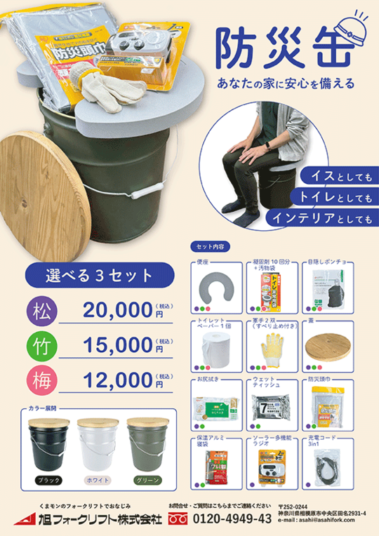 大人気のいす缶に防災用品をセット!