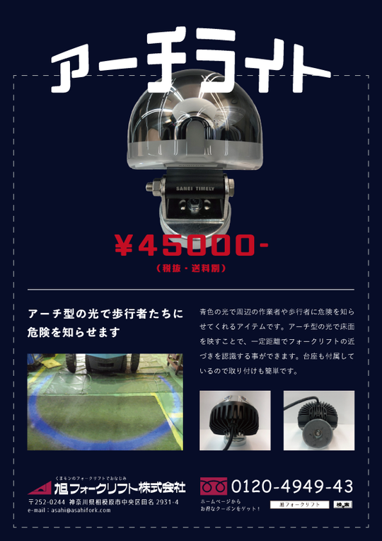アーチ型の光を床に映し、周囲に危険を知らせます。