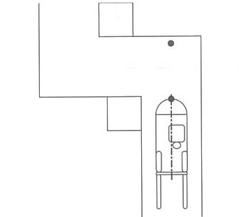 3.前輪タイヤと角が20~30cm程度あいていればすばやく左側後方を見る。カウンタウエイトが曲る方向の角に正対していたら、すばやくハンドルを戻します。