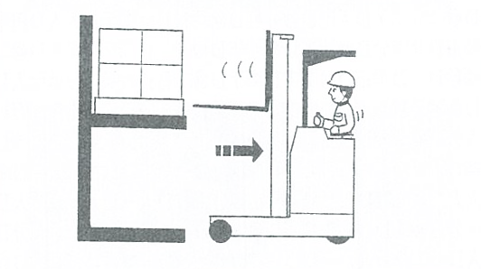よくある事故としては、荷役操作の基本知識がないまま、マストを高く上げた状態で走行してしまう事です。前後安定度と左右安定度を悪くして転倒する恐れがあります。またマストを高く上げた状態で、絶対にチルト操作をしないで下さい。