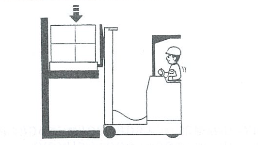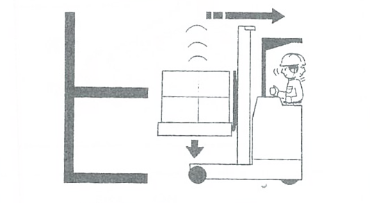 フォークの先端が、パレットまたは荷から20~30cm離れた位置まで後退し一旦停止します。