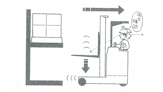 左右後方の安全確認(指差呼称)で「右後方ヨシ・左後方ヨシ」と確認して、後進及び前進で目的の積み付け位置まで移送します。