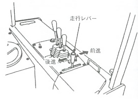 ブレーキペダルから足を外し、走行レバーを中立にします。