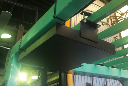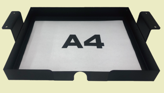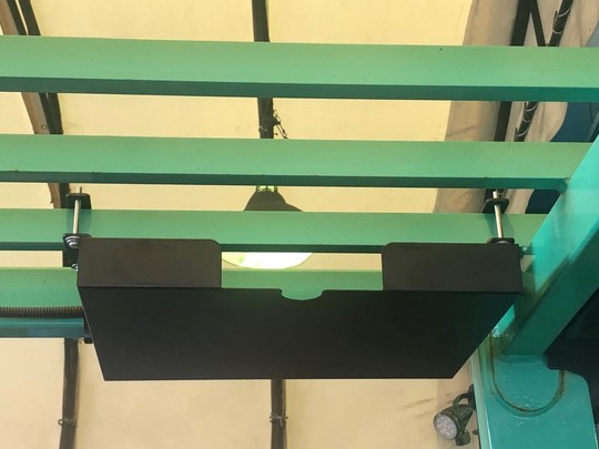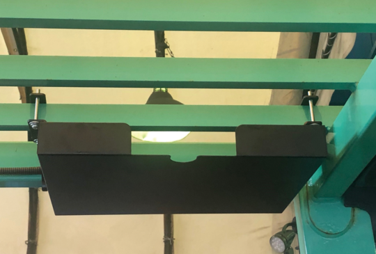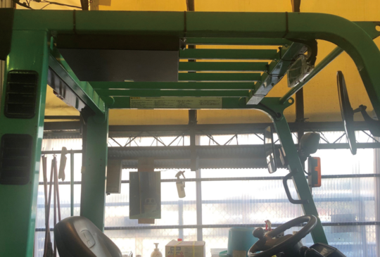 フォークリフトのヘッドガード(屋根の部分)に取り付け、書類や文房具をいつでも取り出せるアイテム。