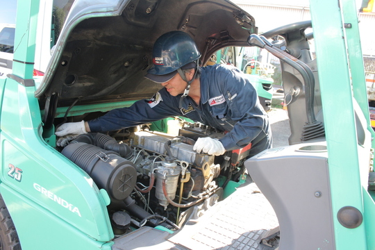 中古車購入時に、月例点検(月に1回の点検)を同時契約すると、中古車が更にお安くなります。「急な故障で業者が来てくれない」なんていう経験はありませんか?月例点検をつけておけば、毎月お客様のところへ担当サービスマンが訪問しますので、安心してフォークリフトの作業をして頂けます
