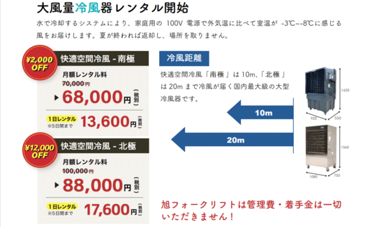 全部となると大変おおがかりになるので、こちらの業務用冷風機「快適空間冷風南極(旧称グアム)」を導入して下さいました。