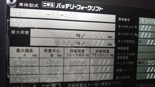 ニチユ FBRM10N-85-400(1.0トン バッテリー)