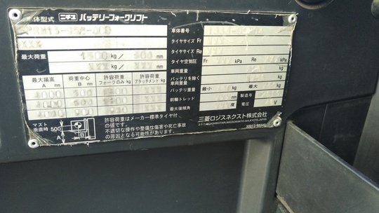 ニチユFBRM15-85B-400(1.5トン バッテリー)