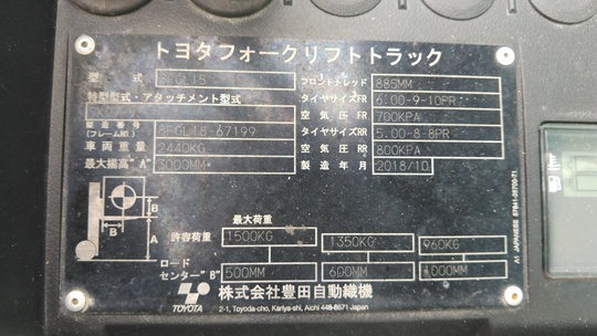 トヨタ 8FGL15(1.5トン ガソリン)