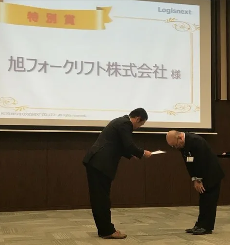 フォークリフトメーカーの三菱ロジスネクストより【フォークリフト新車販売台数 関東圏 第2位】という素晴らしい成績で毎年表彰されております。これは全国優秀企業のうち販売台数最多である14社だけが表彰されるものですので、安心してお問合せ頂けます。